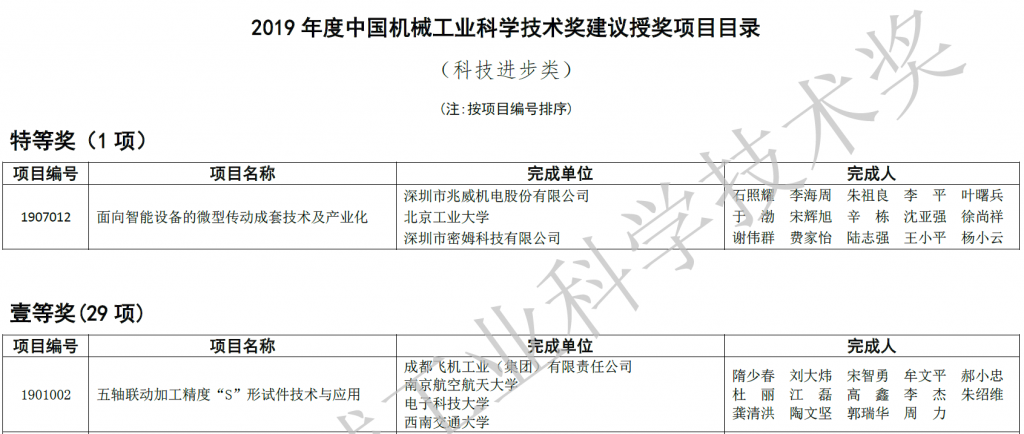2019Äê10ÔÂ11ÈÕ£¬Öйú»úе¹¤³Ìѧ»á¹ÙÍø·¢²¼ÁË¡¶¹ØÓÚ±íÕÃ2019Äê¶ÈÖйú»úе¹¤Òµ¿ÆÑ§¼¼Êõ½±½±ÀøÏîÄ¿µÄͨ±¨¡·£¬ÆäÖÐÎÒ˾Óë±±¾©¹¤Òµ´óѧ¡¢ÉîÛÚÊÐÃÜÄ·¿Æ¼¼ÓÐÏÞ¹«Ë¾ÁªºÏ¿ªÕ¹µÄÏîÄ¿—ÃæÏòÖÇÄÜÉ豸µÄ΢ÐÍÇý¶¯³ÉÌ×¼¼Êõ¼°²úÒµ»¯£¬ÈÙ»ñ¿Æ¼¼½ø²½½±ÌصȽ±£¨Ö¤Êé±àºÅ R1907012-02?°ä½±ÐÅÏ¢£º2019Äê¶ÈÖйú»úе¹¤Òµ¿ÆÑ§¼¼Êõ½±°ä½±´ó»á?http://www.cmiao.com.cn/cms/news/773.htm£©¡£